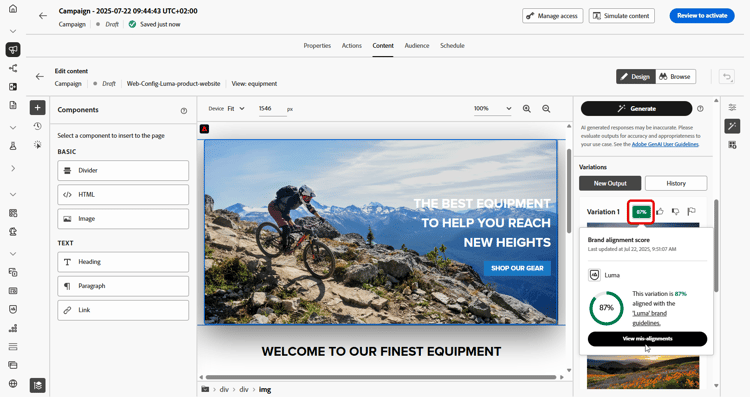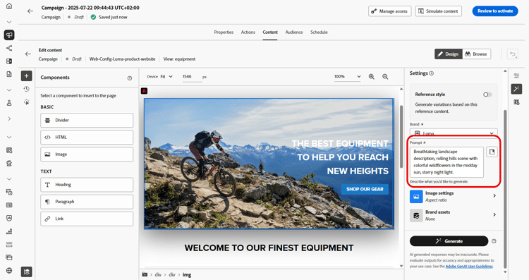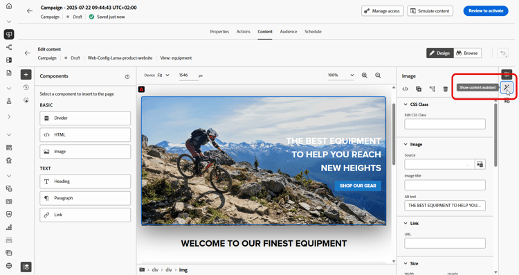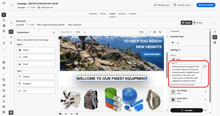 创建并个性化您的网页后,请使用由创作AI提供支持的Journey Optimizer AI助手,将您的内容提升到新的水平。