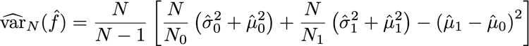 用经验估计值π0 = N0/N代替赋值概率,方差项可以用个别样本的平均估计值μ0,1和标准差估计值σ0,1表示:
