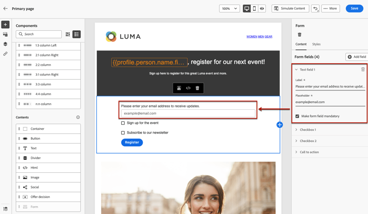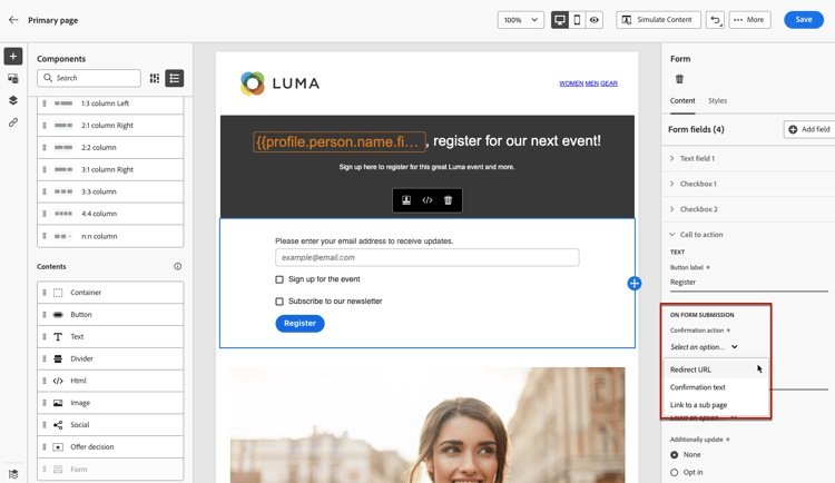 例如,如果将复选框链接到主登陆页上的订阅列表,则可以在“感谢”子页面上使用该订阅列表。