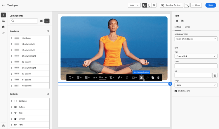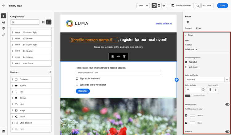 要设计登陆页面内容,您可以使用与电子邮件相同的组件。 了解详情