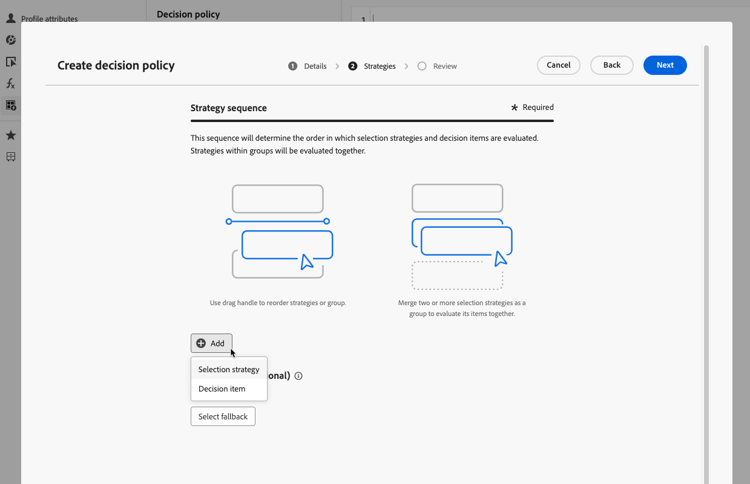 重复上述步骤5和6以创建另一个决策策略,然后选择您创建的第二个选择策略 — 使用公式作为排名方法的策略。