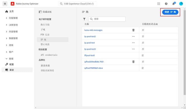 首次访问 Journey Optimizer 时,系统会为您设置一个生产沙盒,并根据合同分配特定数量的 IP。