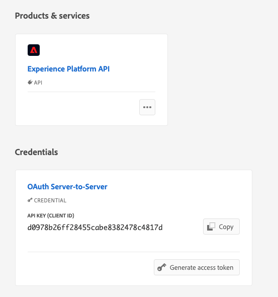code language-none { "type": "customAuthorization", "authorizationType": "Bearer", "endpoint": "https://ims-na1.adobelogin.com/ims/token/v3", "method": "POST", "headers": {}, "body": { "bodyType": "form", "bodyParams": { "grant_type": "client_credentials", "client_secret": "********", "client_id": "<client_id>", "scope": "openid,AdobeID,read_organizations,additional_info.projectedProductContext,session" } }, "tokenInResponse": "json://access_token", "cacheDuration": { "duration": 28000, "timeUnit": "seconds" } } -