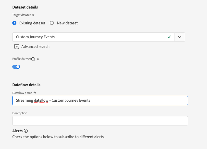 选择 下一步 以及要写入数据的数据集。 单击 下一步 和完成。