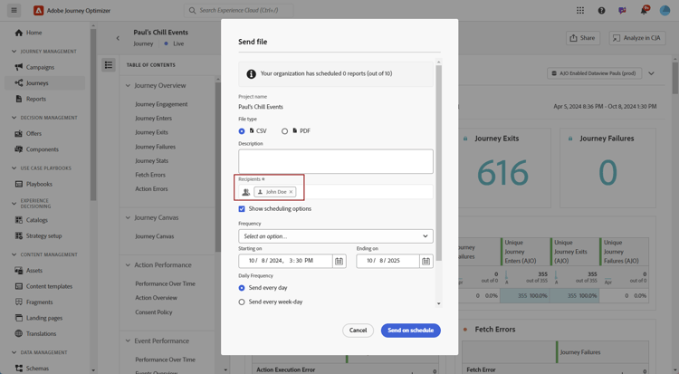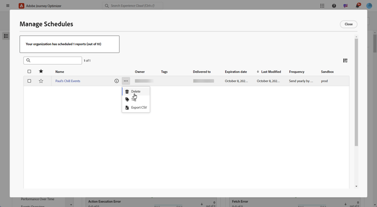 通过 计划导出,您可以每周、每月或每年自动投放最多10个报告。 您还可以通过更新、编辑、取消或删除任何计划导出的选项轻松管理计划报表。