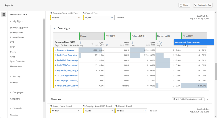 此功能强大的选项可将您无缝重定向到您的 Customer Journey Analytics 环境,使您能够对报告进行广泛个性化。 您可以使用专门的Customer Journey Analytics量度扩充构件,将您的洞察提升到新的水平。