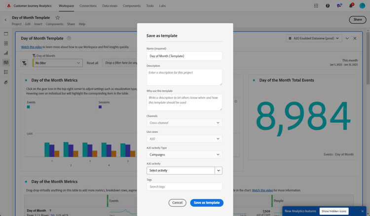 您现在可以选择利用“客户历程分析”模板来增强 Journey Optimizer 报告。了解有关Customer Journey Analytics模板的更多信息