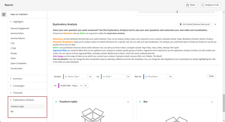 利用所有报表中提供的 Customer Journey Analytics 在CJA中分析 功能,通过 许可证增强您的数据分析体验。