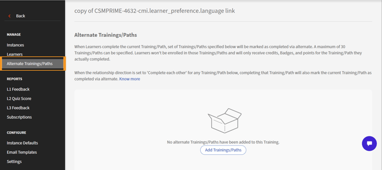 作为管理员,您可以添加替代课程和路径,以便学习者可以选择完成其课程和路径的多个选项。