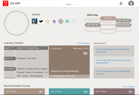 - 点击顶部的“菜单”下拉菜单,然后点击“学习”选项。 此时会以磁贴列表的形式显示所有可用课程。