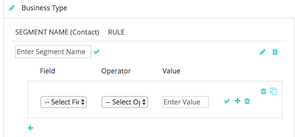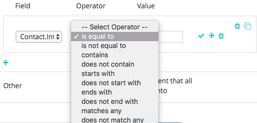 - 单击加号图标以显示规则输入字段。 字段选取列表中的选项直接从您的CRM中提取字段