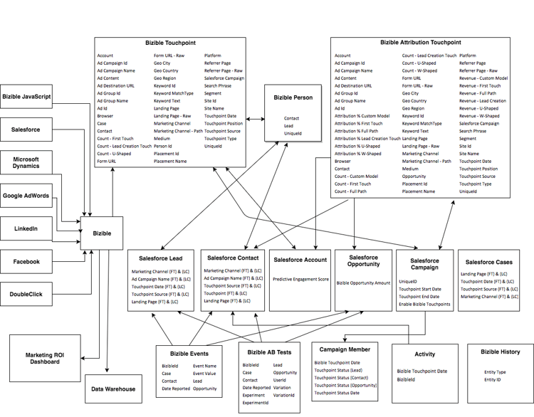 每个箭头都描述对象与另一个对象之间的关系。 例如,您看到Marketo Measure人员填充了标准Salesforce潜在客户对象上的字段。 如果指向它,则表示它填充了箭头的接收端。