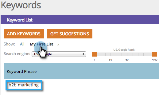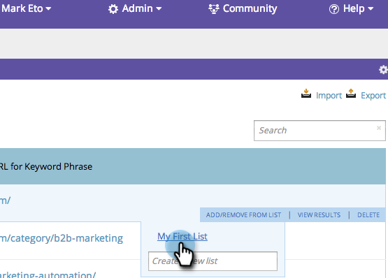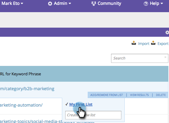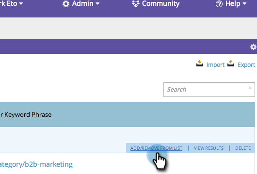 将鼠标悬停在要添加到列表中的关键字上。 单击 Add/Remove from list。