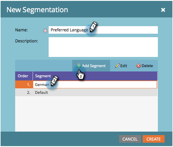 命名分段 Preferred Language。 单击 Add Segment。 键入语言。