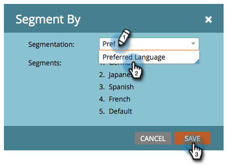 从 Segmentation 下拉列表中,键入 Preferred 并选择 Preferred Language。 单击 Save。