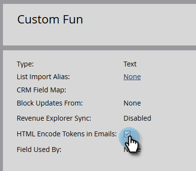 选中 HTML Encode Tokens in Emails 框可启用,取消选中可禁用。