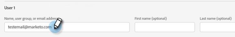 输入要添加的用户的名称、用户组或电子邮件地址。 名字和姓氏是可选的。