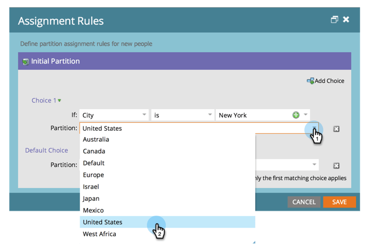 单击 Add Choice 可添加将人员路由到人员分区的条件。