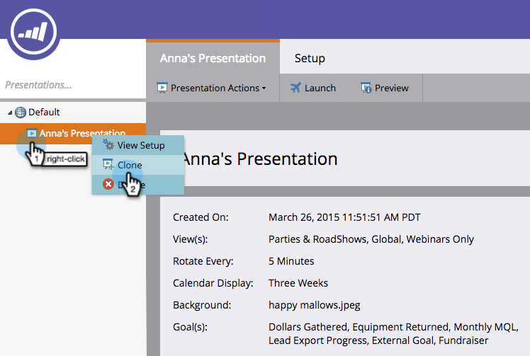 右键单击演示文稿并选择Clone。