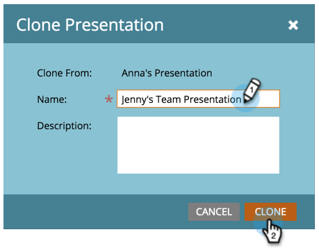 输入克隆演示文稿的名称,然后单击Clone。