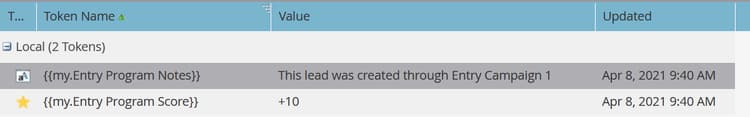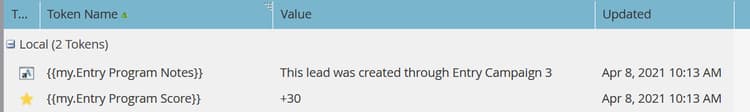 - 利用令牌继承 — 例如,如果您有一个由多个不同资产触发的通用评分流,则可以在子营销活动和父营销活动中定义默认的“我的令牌”分数,以便您可以覆盖父营销活动的子分数营销活动值(请参阅下面的可视示例)