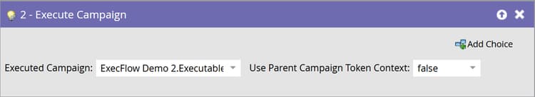 下面是一个可执行营销活动和两个父营销活动中的令牌继承的可视示例:一个将令牌上下文设置为True,另一个设置为False。