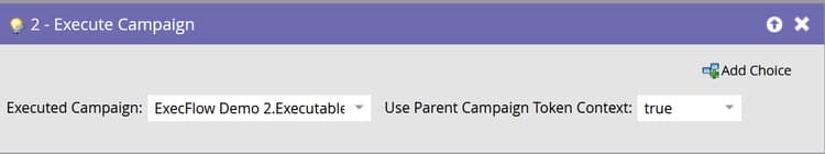 在第一个父营销活动的执行营销活动流程步骤中,“Use Parent Campaign Token Context”设置为True。