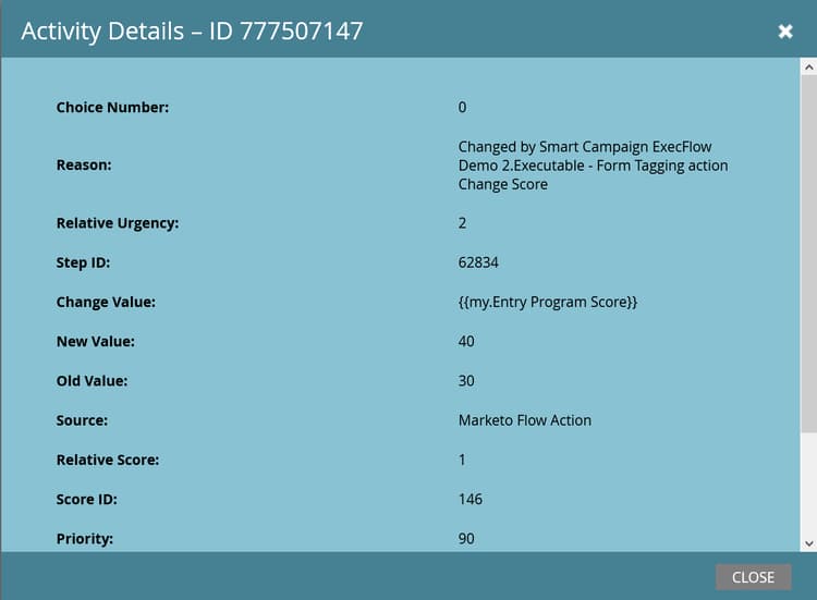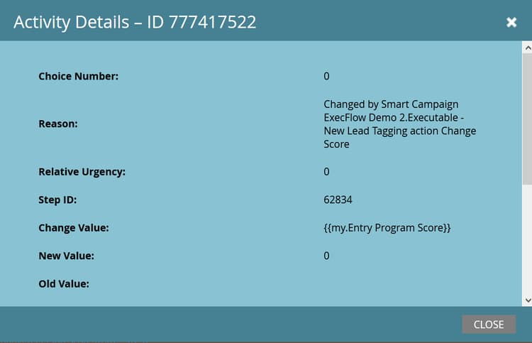 结果:得分未更改,因为使用了子营销活动的得分值+0。