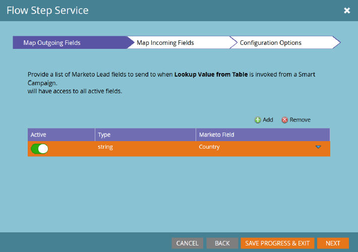 要接收或返回来自特定商机字段的数据,必须映射该字段。 虽然映射是载入期间的必需步骤,但您以后可能始终会返回更改映射。 在单独的屏幕中配置两种类型的映射:传出字段和传入字段,前者是在Marketo调用流程步骤时发送到服务,后者是在服务将数据返回到Marketo时可能从服务接收数据的字段。
