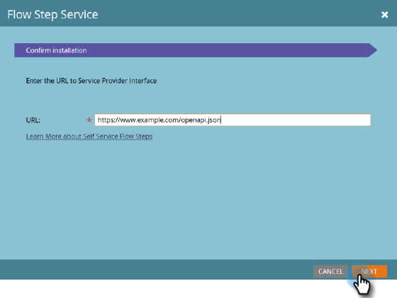 所安装的流动步骤的使用方式与标准流动步骤大致相同。 该服务定义的所有流参数均呈现给最终用户。