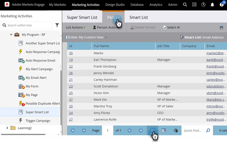 要更新智能列表 People 选项卡中的数据,请单击刷新图标。