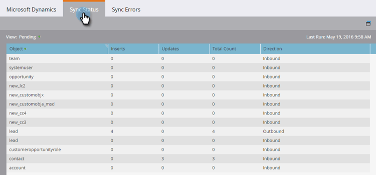 同步状态详细信息按插入和更新以及最早的插入和更新记录进行细分。