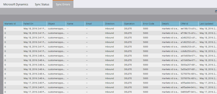 浏览、搜索或导出未能与操作、方向、错误代码和错误消息等详细信息同步的潜在客户(和其他对象)。