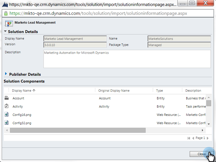 选择Marketo解决方案并单击 Publish All Customizations。