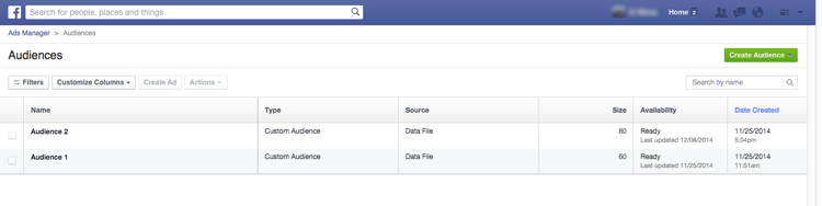 就是这样! 在Facebook中,您将在 广告管理器 > 受众 中看到新受众。
