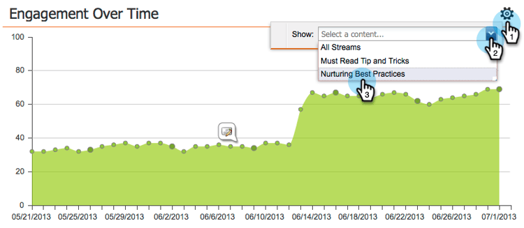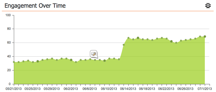 显示一段时间的平均参与度分数以及内容编辑的影响。