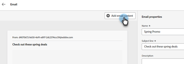 在刚刚创建的电子邮件中,单击 添加电子邮件内容。