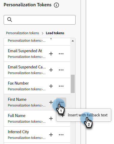 找到所需的令牌,然后单击 … 图标(改为单击+图标可添加不含回退文本的令牌)。