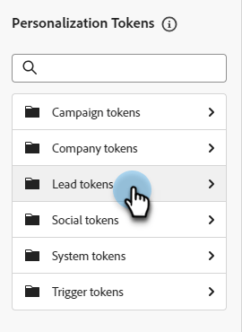 选择文本组件。 将光标放在您希望令牌出现的位置,然后单击 添加个性化 图标。