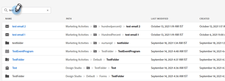 将显示搜索结果。 您可以单击任何痕迹导航中的任意位置,以直接转到该项目。