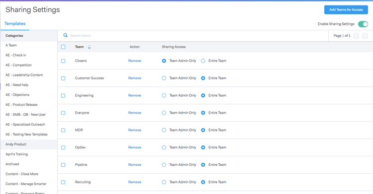 首次创建Sales Connect帐户时,Sharing Settings已启用。 这可以让您的帐户管理员在打开存储库并允许用户将内容共享到您的团队类别之前,创建和组织您的模板类别。