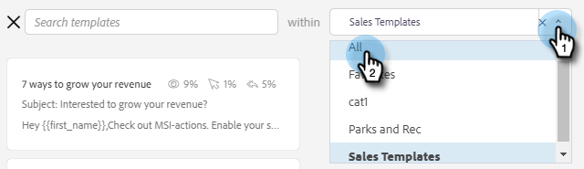 按电子邮件模板名称、主题行或正文搜索。 单击所需的模板以将其选定。