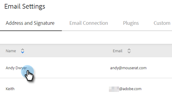 在 Address and Signature 选项卡中,选择要为其创建签名的电子邮件标识。