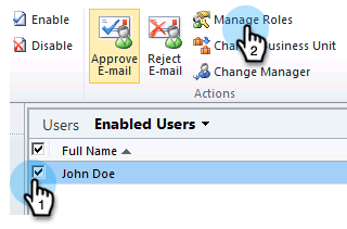 选择要向其授予访问权限的用户,然后单击 Manage Roles。