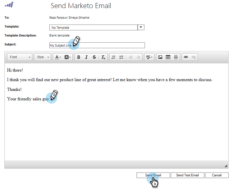 做得好! 现在您知道如何从Microsoft Dynamics中直接发送Marketo跟踪电子邮件。