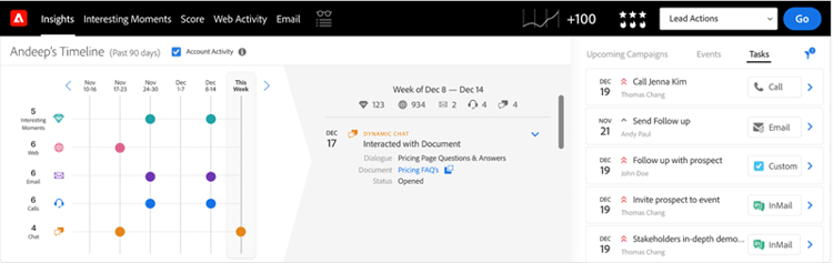 与文档交互:已登录Marketo并在访客与通过聊天机器人共享的文档交互时Sales Insight中填充。