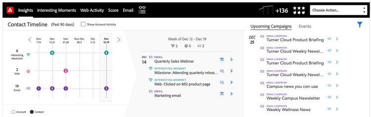 - 用户可以选择“Show Account”活动,这会将所有帐户级别的“有趣时刻”、电子邮件和Web活动分层到联系人视图中