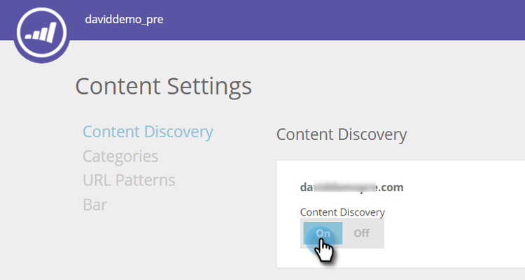 将Content Discovery设置为On将在任何Web访客点击文件或观看视频时自动发现PDF或视频内容。 此内容片段(URL、内容名称和图像URL)会添加并跟踪到“所有内容”页面下。 自动发现视频时,我们会在Web访客从YouTube、Vimeo或Wistia单击并观看嵌入视频时发现视频。 要自动发现其他内容,您需要创建内容模式。
