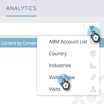 您可以按各种属性/属性(如ABM Account List、Country等)筛选结果。
