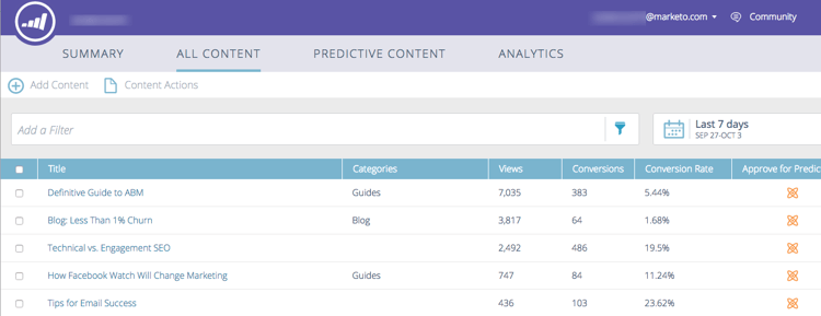 您可以添加新内容并跟踪它,删除一段内容,或批准一段内容。 批准内容后,您可以在“预测内容”页面上编辑内容。